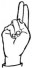 На ћирилици написано БОГИЋ АЏИЋ састоји се из 9 слова [?]. Исписано ћириличном једноручном азбуком за глувонеме: